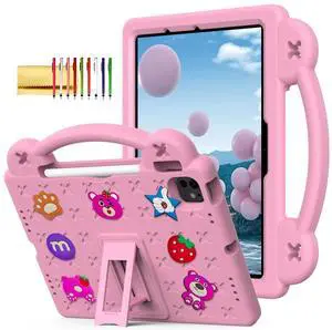 Dteck iPad Air 13"/Pro 13" 2024 M4/Pro 12.9 6th/5th/4th/3rd Gen Case - Strawberry Panda Shockproof Rugged Lightweight Convertible Stand With Handles, Kids Friendly, Pink