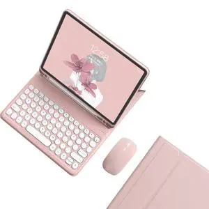 kaidisen Keyboard Case for Galaxy Tab S9 FE+ / Tab S10+ /S9+/S8+/S7+/S7 FE 12.4 inch Case with Bluetooth Mouse and Detachable Candy Color Keyboard Cover Round Key,Pink