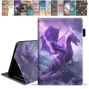 FVAENDHIO Case for Kindle Fire 7 Tablet (12th Generation, 2022 Release, 7" Display) with Card Slot & Auto Sleep/Wake, Slim Folding Stand Folio Cover, Purple Dragon