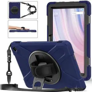 FONREST for All-New Fire HD 10 Tablet 13th Generation 2023 Release 10.1" Rugged Case, Portable Heavy Duty Shock-Proof Armor Cover with 360 Rotatable Kickstand/Hand Grip, Shoulder Strap (Navy)