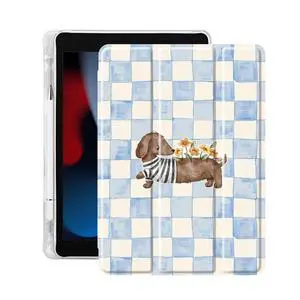 Idocolors Cute Funny Animal Case for 11-Inch iPad Air 2025 M3/iPad Air 2024 M2 (6th Gen), Built-in Pencil Holder with Soft TPU Clear Back Shell, Auto Wake/Sleep, Floral Dachshund