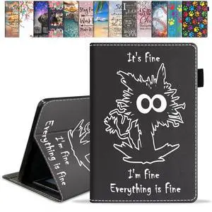 FVAENDHIO Case for Kindle Fire 7 Tablet (12th Generation, 2022 Release, 7" Display), Funny Cat, It's Fine I'm Fine Everything is Fine Premium PU Leather Cover with Auto Sleep Wake