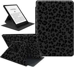 SDDFRHGH Case for 7 Kindle Paperwhite (12th Generation,2024) & Kindle Colorsoft Signature Edition 7 inch,360 Degree Rotating Anti Slip Slim Stand Smart Cover Case- Black Leopard Print