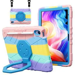 AKABEILA Compatible with iPad Pro 11 2024/2025 M4/M5 Gen Tablet Case, Relaxation Focused Cover with Rotating Stand/Handle and Shoulder Strap Colorful+Blue