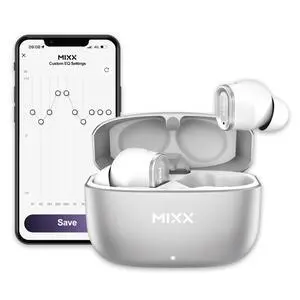 MIXX StreamBuds Custom 1 True Wireless Earbuds 24hr Battery, Touch Controls, App EQ, Digital Display, Hands-Free Calling, Quick Charge Zinc Alloy Case, Bluetooth 5.3, 3 Sizes - White