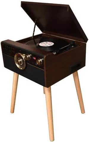 Arkrocket 3-Speed Bluetooth Record Player Retro Turntable with Built-in Speakers and Removable Legs [ Limited Edition ] (Brown)