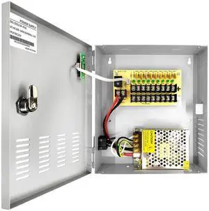 9 Channel 12 Volt DC Output 5A CCTV Distributed Power Supply Box for Security Camera with AC Plug and Lock for Security Cameras, DVRs, CCTV Power Supply (5A 9-Channel)