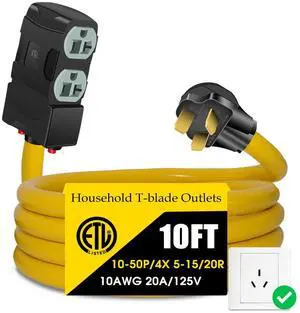 50Amp to 20Amp 110V Adapter, Compatible with NEMA 10-50P to 4X 5-20R/15R with 20 Amp Circuit Breaker, 220/250V Electrical Stove/Range/Oven Male Plug Gas 110/125V Power Convert Adapter(10 FT)