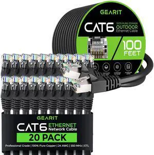 GEARit 20Pack 2ft Cat6 Ethernet Cable & 100ft Cat6 Cable