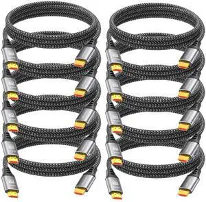 URELEGAN 10K 8K HDMI Cable 10FT 10-Pack, High Speed HDMI 2.1 Cord 48Gbps,/4K@144Hz/120Hz/240Hz/8K@60Hz@240Hz with eARC/ARC, HDCP2.3/2.2, 3D HDR10+ for PC, HDTV,Monitor, Projector, PS5, Xbox, Soundbar