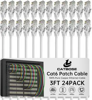 3 Feet Cat6 Patch Cables(24 Pack), Solid Pure Copper Patch Cord, Cat 6 Ethernet Cable, UTP Network, High Speed RJ45 Internet Cables, Compatible for Router, Switche, PC, Server, PS4/5, Xbox - White
