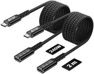 JBTOP USB C Extension Cable 6.6FT 2pack,[40Gbps/240W/8K] USB C 4.0 Extender, Fast Charging & Transfer Type C Male to Female Cord Compatible with PSVR2/MacBook Air M2 Pro//iPad Pro/Magsafe/USBC Hub