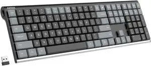 Arteck Mechanical 2.4G USB Wireless Performance Keyboard, Tacktile Quiet Brown Switches, Stainless Steel Low Profile for PC/Desktop/Laptop/TV and Windows 11/10 Built in Rechargeable Battery Gray