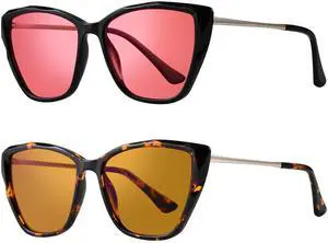AVDLAB Indoor Fluorescent-41 Pink & Outdoor Fluorescent-60 Brown Tinted Blue Light Blocking Glasses Cat Eye Migraine Light Sensitivity Computer Glasses Photophobia Fluorescent LED Glare Women AB3304