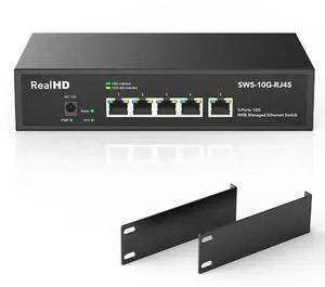 5 Port 10Gb RJ45 Web Managed Ethernet Network Switch, 5 x 10 Gigabit Base-T Port ^^ 10Gbps Multi-Gig Swicth Support 5G-2.5G-1G-100M ^^ 19 Inch Rack Mount ^^ 100G Bandwidth ^^ Metal Casing ^^ Built-in