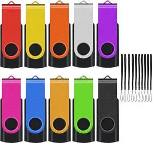 EASTBULL Flash Drive Bulk 64GB USB 10 Pack with Lanyards USB 2.0 Thumb Drive Bulk Memory Stick Swivel Pen Drive for Storage and Backup(64GB 10Pack, Mixed Color)