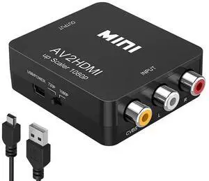 AV to HDMI Converter, RCA to HDMI Converter Adapter, 1080P Mini RCA Composite CVBS Audio Video Converter Supports PAL/NTSC Compatible with PC/Laptop/Xbox /PS4 /TV/STB/VHS/VCR/Blue-Ray - Black