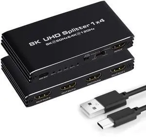 HDMI Splitter 8K 60hz Ultra-HD Converter Compatible 2.1 Switch 1-IN-4-OUT 48Gbps UHD Hub Support HDCP SST Extended 4K@120hz 3.5mm Audio
