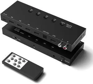 4x1 8K HDMI Switch with Audio Extractor, 8K@60Hz HDMI 2.1 Switcher with Remote, Optical/RCA/3.5mm Audio Output, Supports HDR10, Dolby Vision, HDCP 2.3, Compatible with PS5/Xbox/Apple TV/Soundbar