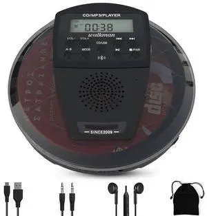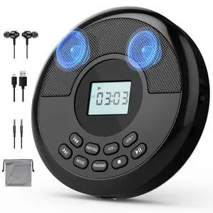 CD Player Portable,Discman Rechargeable,Walkman CD Player with Speaker, Headphones,CD-R,MP3 USB playable,Anti Skip CD Playing for car,Suitable for Personal or Multi-Users,Black
