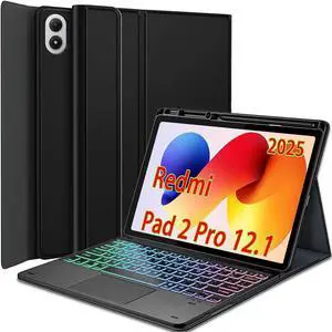 Nanhent Touchpad Keyboard Case for Xiaomi Redmi Pad 2 Pro 12.1 Inch 2025 Tablet, 7 Color Rainbow Backlight Detachable Bluetooth Trackpad Keyboard Folio Smart Cover with Pen Holder