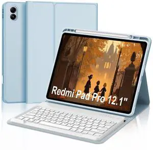 IVEOPPE for Redmi Pad Pro Keyboard with Case for Xiaomi Redmi Pad Pro 12.1 inch 2024/Xiaomi Poco Pad 12.1" PU Leather Cover Detachable Bluetooth Wireless Keyboard with Pencil Holder,Light Blue