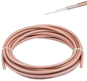 POBADY RG142 Cable Low Loss RF Coaxial Cable 32.8FT/10M Brown Silver-Plated Copper Double Shielded Coax