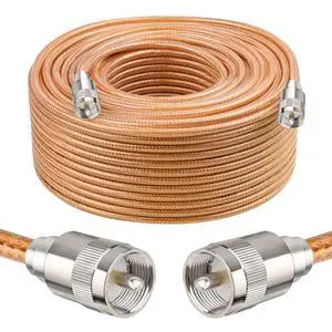 XRDS -RF 150FT RG8X Coaxial Cable with UHF Male PL259 Connectors, Solid Copper Core, Braided Shield, CB Cable for Ham Radio, HF Radio, and Communication Devices
