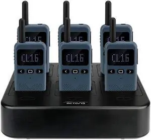 Retevis RB19 2 Way Radio with Screen,Rechargeable Two Way Radios with 6 Way Multi Gang Charger,Channel Display,1650mAh,Slim,Hands Free Walkie Talkies for Adults School Church Healthcare Bank(6 Pack)