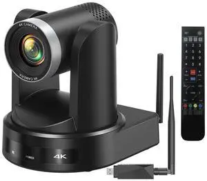 4K Wireless PTZ Camera AI Auto Tracking, Wireless/USB3.0/LAN, Video Conference Camera 12X Zoom, Low-light Enhancement, IP Live Streaming for Church, Education and Conferences, OBS vMIX, Easy Setup