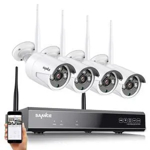 SANNCE 10CH 5MP NVR All-in-One Wireless CCTV Security Camera System with 4 * 5MP Waterproof Surveillance IP Cameras, Plug an Play, Enhance Signal, P2P, Snapshot Email Alert & APP Push