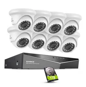 Wired Security Camera System, SANNCE 8CH CCTV DVR with 1TB Hard Drive and 8Pcs Outdoor Surveillance Cameras, Support 100ft Night Vision, Waterproof, Remote Access, Motion Alert, for 24/7 Recording