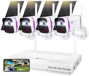 xmartO Solar Security Cameras Wireless Outdoor, WiFi6 NVR with 64GB Micro SD Card, 4 PCs 4MP QHD Home Security Camera System with 10CH Expandable NVR, 120 Days Local Storage, All-Weather Solar Charge