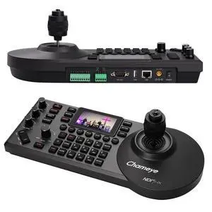 Chameye NDI PTZ Camera Controller PoE 4D Joystick Control with 3-inch LCD Preview, IP PTZ Controller Network Keyboard for Church Worship Live Streaming, E300 Black