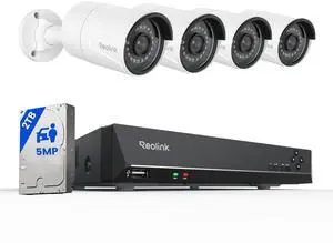 REOLINK 8CH 5MP Security Camera System, 4pcs Wired PoE Cameras for Home Security Outdoors, Smart Person/Pet/Vehicle Detection, 4K 8CH NVR with 2TB HDD for 24-7 Recording, RLK8-410B4-5MP White
