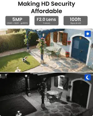 SANNCE 10CH 5MP Wireless NVR Security Camera System with 1TB HDD 4Pcs 5MP WiFi Cameras 100ft Night Vision H.264+ Motion Alert AI Human Detection Waterproof Work with Alexa