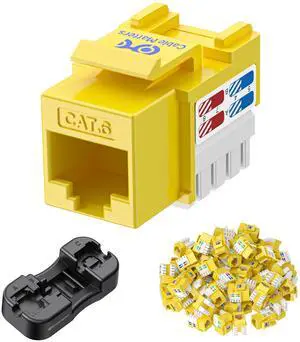 [UL Listed] Cable Matters 25-Pack 10Gbps Cat6 Keystone Jacks, RJ45 Keystone Jack, Ethernet Modular Jack in Yellow with Punch-Down Stand for Patch Panel and Wall Plate