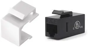 VCE 30-Pack Blank Keystone Jack Inserts White Bundle with 25-Pack CAT6 RJ45 Keystone Jack Inline Couplers Black