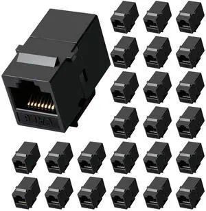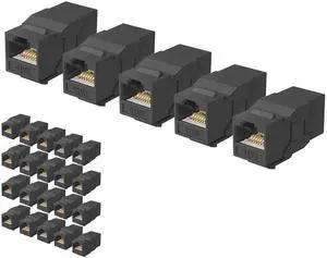 Jadaol 25Pack RJ45 Cat6 Keystone Couplers [UL Listed], Female to Female Inline Couplers, 10Gbps Patch Cable Extension, UTP Ethernet Lan Coupler, Cat6 Cable Connector for Patch Panel, Wall Plate, Black