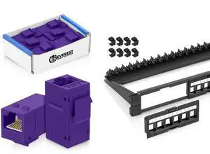 Everest Media Solutions Bundle 2 Items: 48-Port Keystone Patch Panel + 12 Pack of RJ45 CAT6 Keystone Couplers - Purple