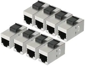 uxcell 8 Packs CAT 6a Keystone Jacks, RJ45 Couplers Female to Female Straight Shielded In-Line Cat6A Cable Network Ethernet Module Silver