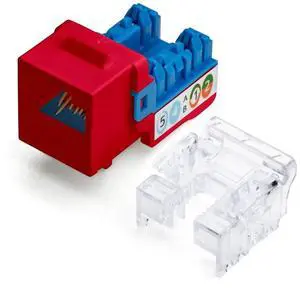 Vertical Cable CAT6 RJ45 Keystone Jack, V-Max Series - Red Color - (50 Pack) Data Outlet Female