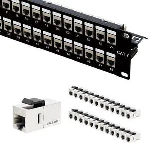 iwillink 48 Port RJ45 Through Coupler 2U Cat7 Patch Panel and Cat7 Shielded Coupler 25-Pack