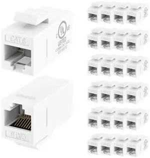 LEENUE 25 Pack CAT6 Keystone Coupler, UL Listed Ethernet Keystone Jack Female to Female, Gold-Plated RJ45 Cat6 Keystone Coupler UTP for Cat6/Cat5e/Cat5 Network Cable, 10Gbps, White