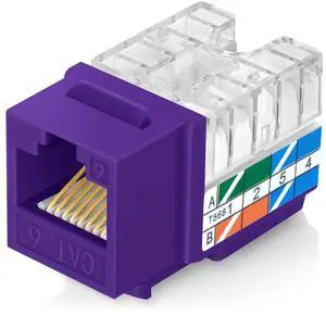 TRUE CABLE Cat6A Keystone Jack, Unshielded (UTP), 90 Degree Punch-Down, PoE++ (4PPoE), UL Listed, ETL Verified, ANSI/TIA Certified, Modular RJ45 Female, Purple, 24 Pack
