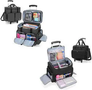 Awlcaw Rolling Teacher Bag, 16 Inch Rolling Laptop Bag with Detachable Dolly & Teacher File Tote, Large Roller Briefcase for Teaching Office Work, Women, Craft Nurse, Black