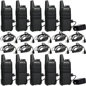 Retevis RT22 Walkie Talkies Rechargeable,Long Range Two Way Radio,2 Way Radio for Adults, Handsfree VOX Mini, for Business Office School Church Restaurant Retail(Black,10 Pcs, 5 Box)