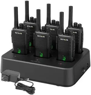 Retevis RT21 2 Way Radio Long Range, Walkie Talkies for Adults, Heavy Duty Rechargeable Two Way Radios with Six-Way Charger, for Manufacturing Education(6 Pack)