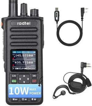 Radtel RT-730 10W Heavy Duty Long Range Walkie Talkie, Tri Band Rechargeable Ham Radio, 199CH with USB-C Battery, NOAA, AM Aviation, Dual PTT for Biking, Camping, Jobsite (with Prog Cable,Headset)