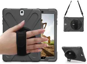BRAECN for Samsung Galaxy Tab A 9.7 Inch SM-T550/P550 Case, Heavy Duty Shockproof Protection Rugged 360 Rotating Stand Handle Shouler/Hand Strap Durable Kidse-Black